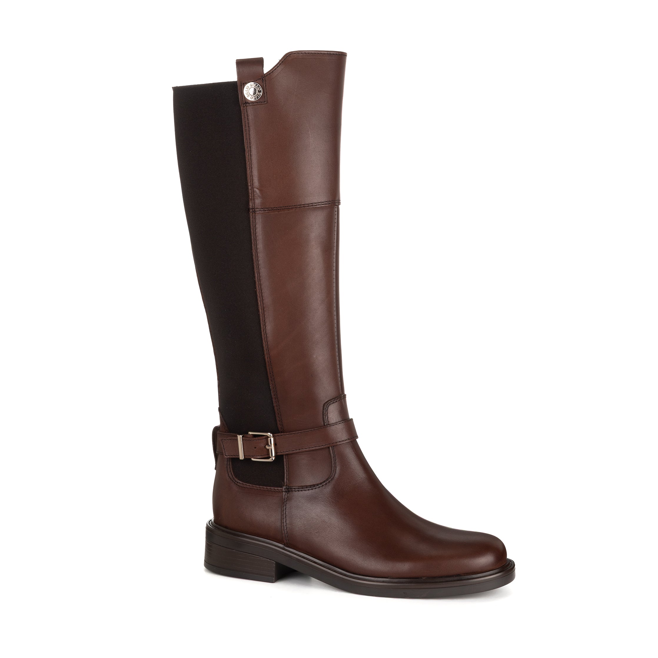 Bota Alta Campera en Piel En Color Café Con Herraje En Tobillo Y Resorte En Tubo Para Mejor Ajuste