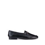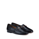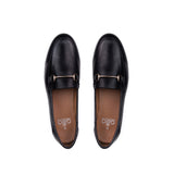 Un clásico mocasín que nunca pasará de moda, hecho en una suave piel color negro acompañado de un delicado herraje en tono oro y una plantilla acojinada.