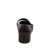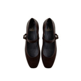 Mary Jen Tacón Bajo Punta Cuadrada En Color Café , Con Ajuste En Tobillo