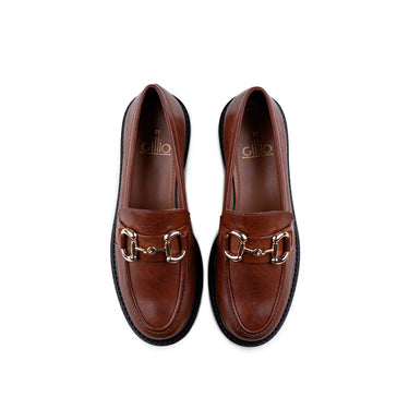 Mocasin Casual En Color Miel Con Antifaz De Herraje Dorado Y Suela Con Cerco.