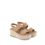 Sandalia de plataforma de yute en color camel.