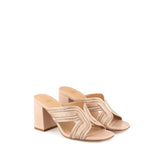 Tacón color nude con tira en detalle color plata y oro rosado.