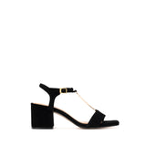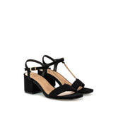Tacones bajos con material super suave de apariencia y sensación a un ante. Placa decorativa en empeine en color oro.