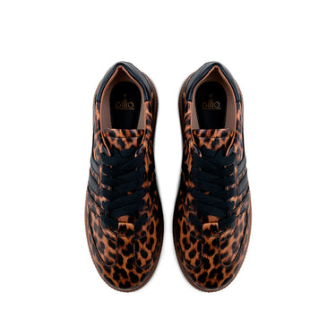 Tenis De Animal Print Leopardo Café , Con Aplicaciones En Negro Y Con Ajuste De Agujetas
