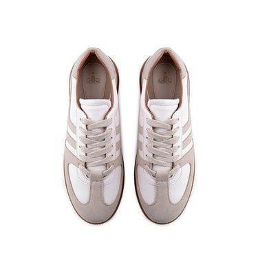 Tenis En Color Hueso ,Con Aplicaciones En Gris Claro , Suela De Goma Café Y Con Ajuste De Agujetas