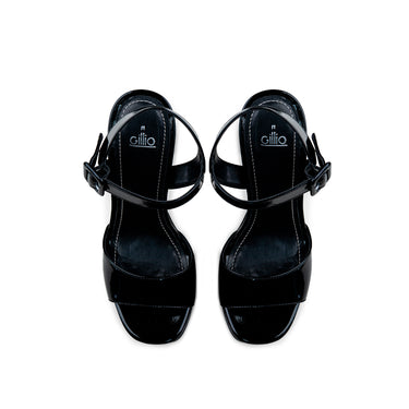 Zapatilla En Tacón Bajo En Color Negro Con Acabado Brillante , Ajuste Perfecto En Tobillo.