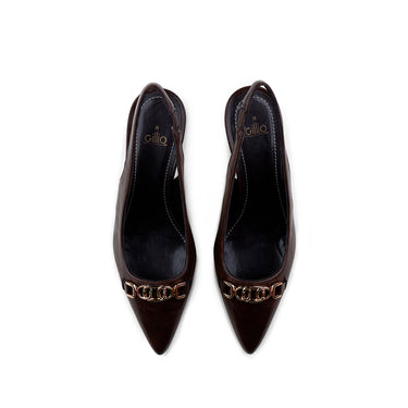 Zapatilla Puntal En Color Café Mate , Con Talonera Y Herraje Dorado Al Frente
