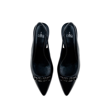 Zapatilla Puntal En Color Negro Mate Con Talonera Y Herraje Color Niquel Al Frente