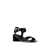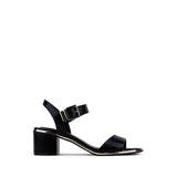 Sandalia De Una Tira Con Ajuste En Tobillo, En Color Negro,Tacón Bajo Y Filo Dorado