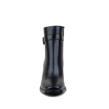 Botín Con Herraje De Hebilla Negro Con Costura Lateral Y Cierre Interno.