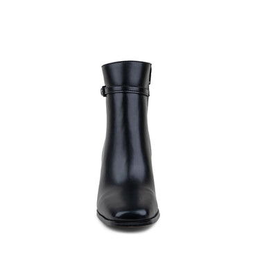 Botin En Color Negro, Con Herraje Lateral Tipo Cinto Y Cierre Interno.