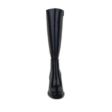 Bota Alta Lisa En Piel Color Negro, Con Punta Redonda Con Cierre Interno.