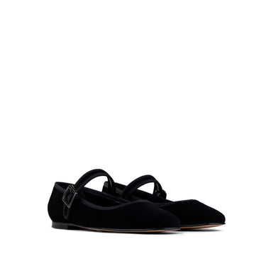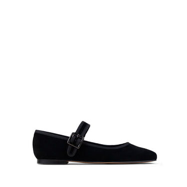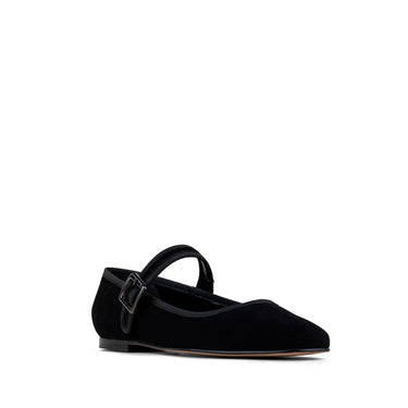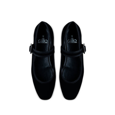 Balerina Punta Cuadrada En Antelina Negro, Con Ajuste En Tobillo Y Suela Rigida