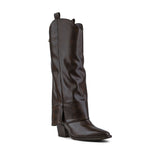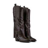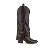 Bota Alta Vaquera En Color Moka Con Dobladillo