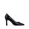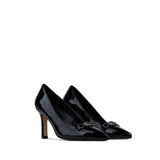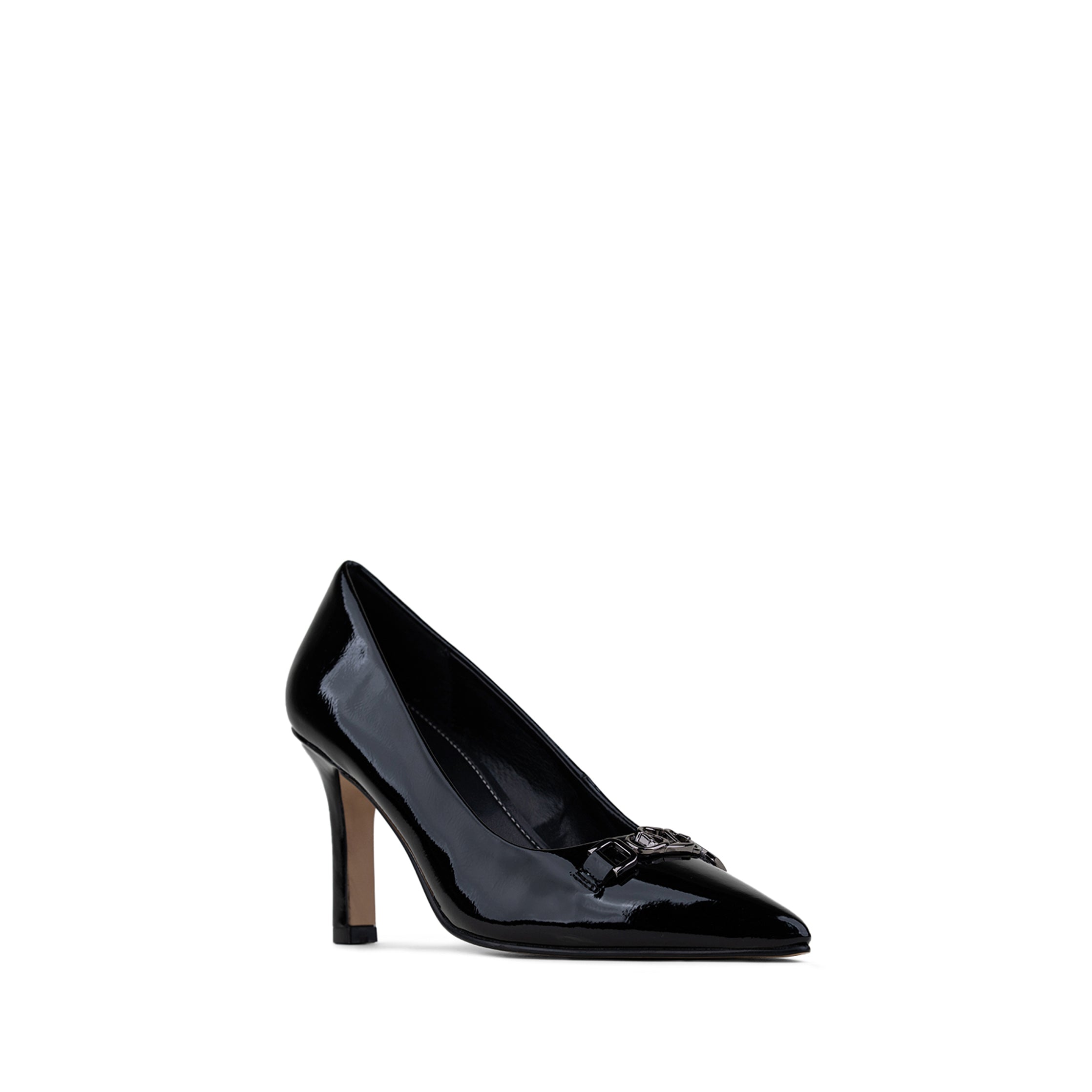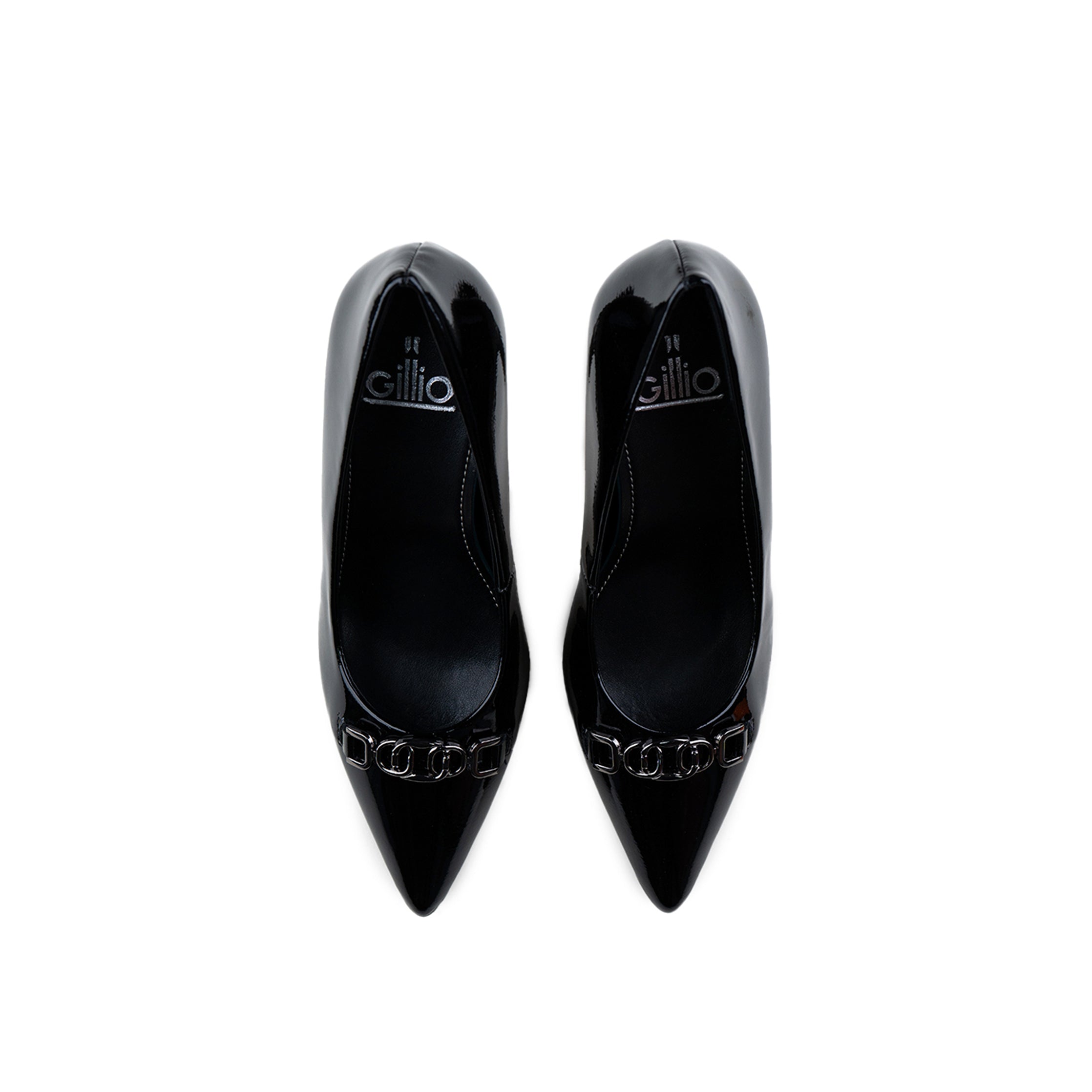 Zapatilla Lisa De Tacón Delgado En Color Negro Brillante Con Herraje Al Frente